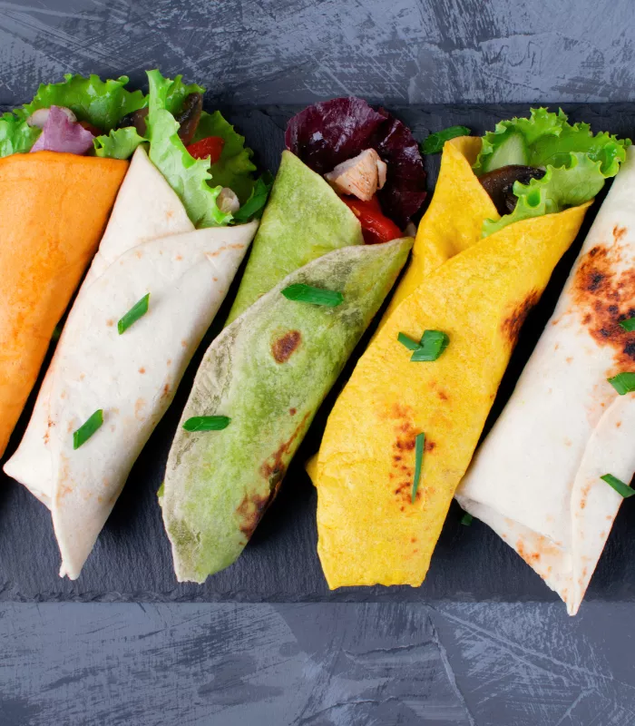 Wraps are a great option for a handheld, mess-free meal. Fill them with a variety of ingredients such as turkey and swiss, roast beef and horseradish, or hummus and vegetables.