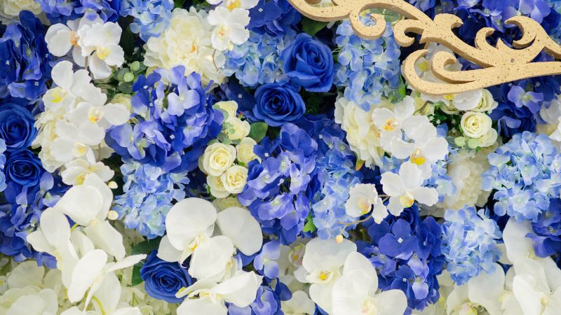 Create stunning visual impacts with floral arrangements featuring blue flowers such as hydrangeas, delphiniums, and cornflowers. These can serve as centerpieces or decorative accents throughout the venue.